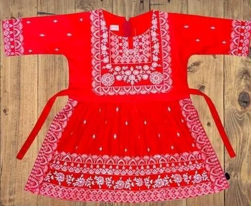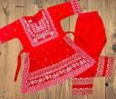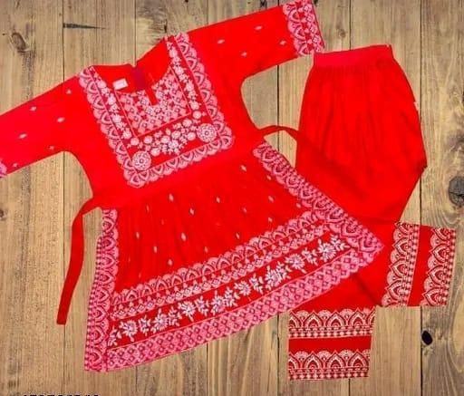 Name: baby girl dress | red with white embroidery, A-line kurta, flared pants, embroidery, relaxed, ethnic/festive, kurta set, pull-on, three-quarter, V-neck, natural, high-low, above knee, unlined, Girls, festive, all-season