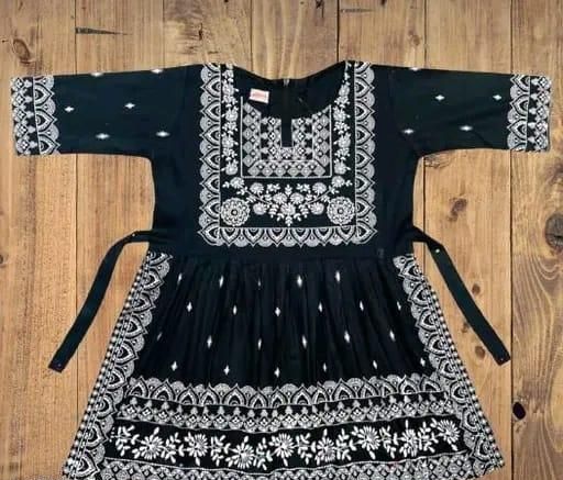 Name: baby girl dress | black with white embroidery, A-line kurta, pleated skirt portion, embroidery, A-line, one-piece, kurta set, pull-on, short sleeve, V-neck, curved, above knee, unlined, Girls, festive, cotton, all-season