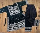 baby girl dress | dark green with white embroidery, A-line kurta, flared hemline, embroidery, A-line, ethnic/festive, kurta set, tie waist, pull-on, three-quarter, V-neck, regular, tiered, above knee, Girls, festive, all-season