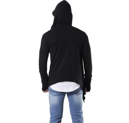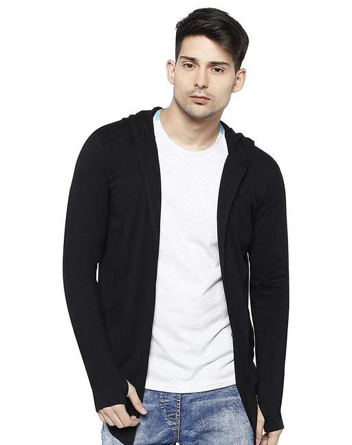 Name: Men Black Hooded Thumbhole Open Long Tshirt Men's Fully Comfortable Solid Cotton Square Neck Collar Full Sleeves Tshirt