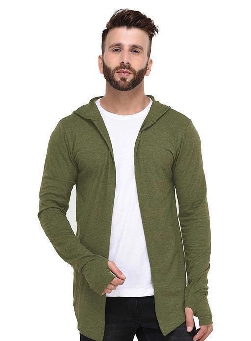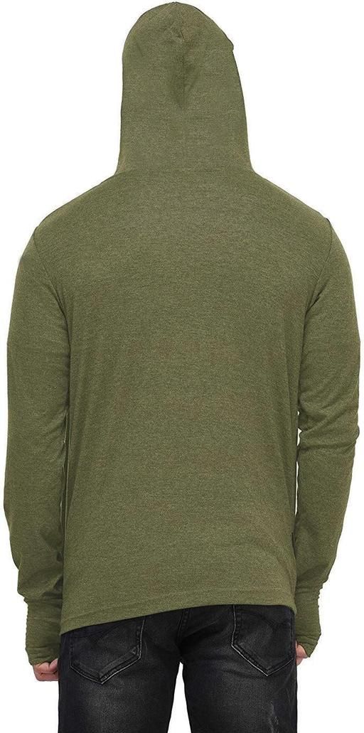 Name: Men Olive Green Hooded Thumbhole Open Long Tshirt Men's Fully Comfortable Solid Cotton Square Neck Collar Full Sleeves Tshirt