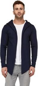 Men Navy Blue Hooded Thumbhole Open Long Tshirt Men's Fashionable Solid Cotton Square Neck Collar Full Sleeves Tshirt