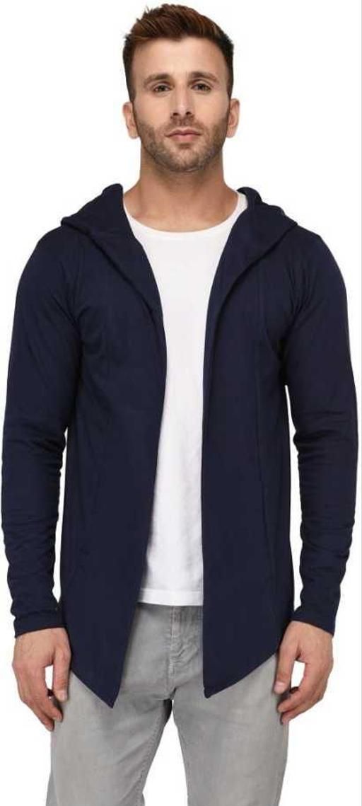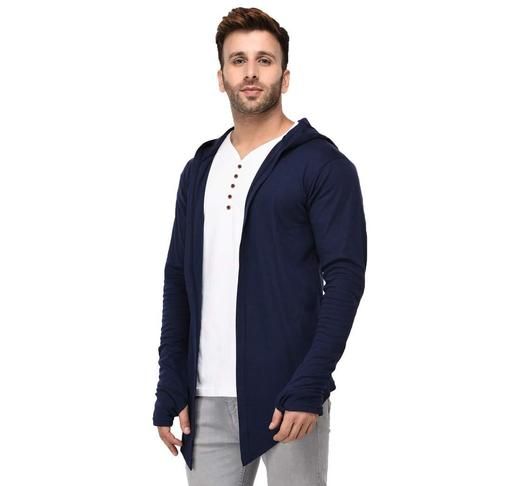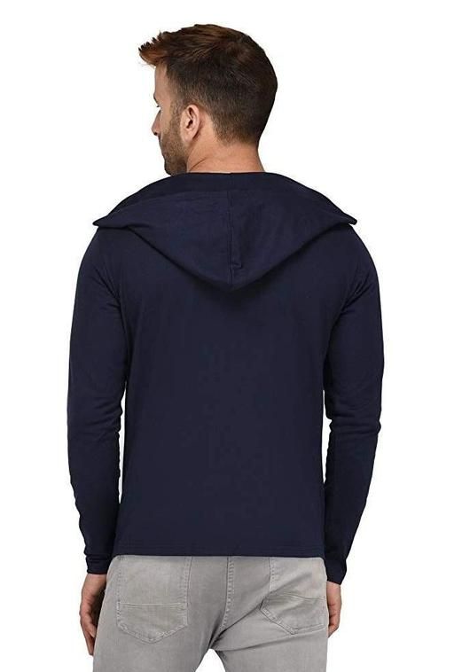 Name: Men Navy Blue Hooded Thumbhole Open Long Tshirt Men's Fashionable Solid Cotton Square Neck Collar Full Sleeves Tshirt