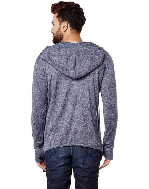 Name: Men Navy Anthra Hooded Thumbhole Open Long Tshirt Men's Fashionable Solid Cotton Square Neck Collar Full Sleeves Tshirt