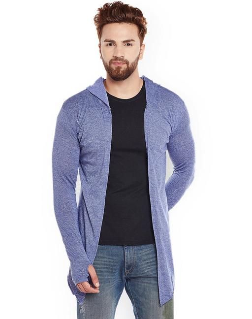 Men Navy Anthra Hooded Thumbhole Open Long Tshirt Men's Fashionable Solid Cotton Square Neck Collar Full Sleeves Tshirt
