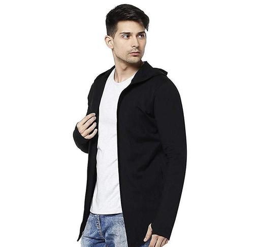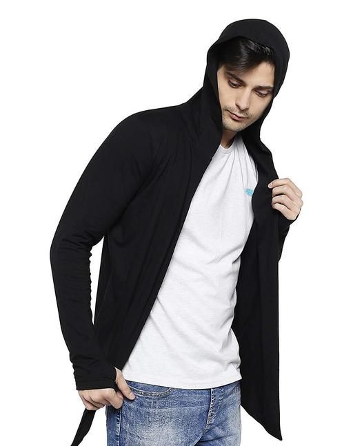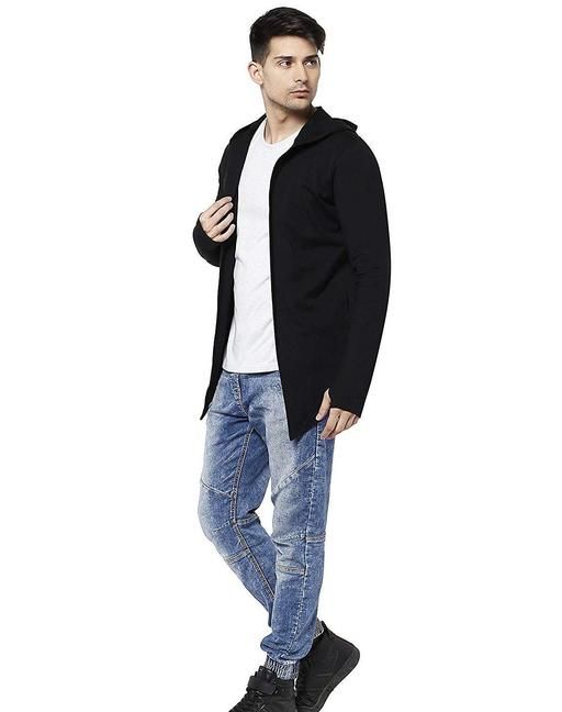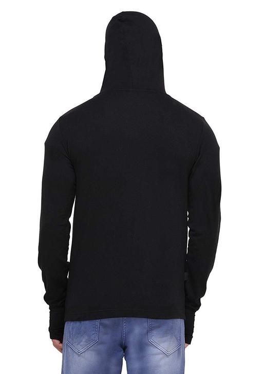 Name: Men Black Hooded Thumbhole Open Long Tshirt Men's Fashionable Solid Cotton Square Neck Collar Full Sleeves Tshirt