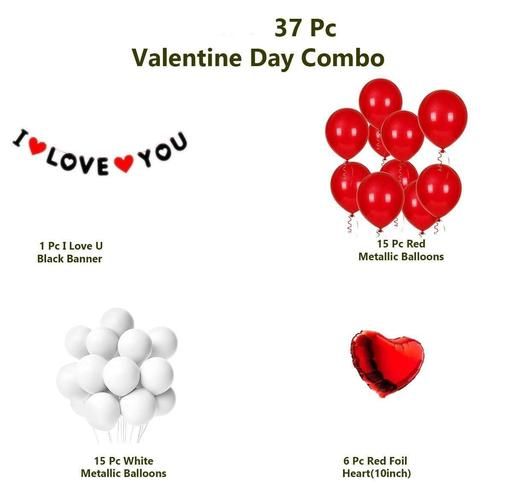 Name: 37 Pc Valentine Decoration Kit- I Love U Banner, Balloons, Red Foil Heart | Wedding Anniversary Romantic Decoration Items for Girls Boys Couples Husband Wife