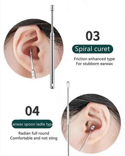 ERGONOMIC DESIGN: Fully polished tools with smooth and rounded surface, all to prevent any irritation or scratching and make sure you can massage the ear canal and relieve itching while cleaning. The handles of the ear wax remover are designed for a non-slip grip.