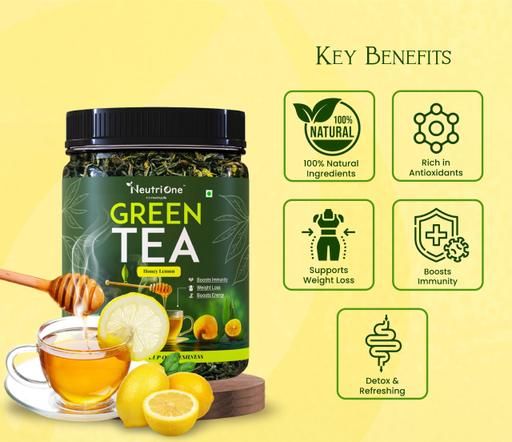 Discover the refreshing taste and wellness benefits of NeutriOne Green Tea Loose Leaf with Honey & Lemon. This carefully crafted blend combines premium quality green tea leaves with the natural sweetness of honey and the zesty flavor of lemon, creating an invigorating brew that is as delicious as it is beneficial.