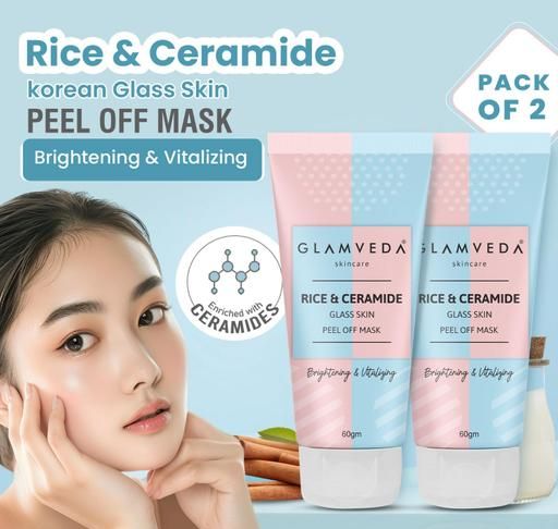 Product Name: Glamveda Korean Rice & Ceramide Glass Skin Peel off Mask For Instant Brightening Skin | Reduce Signs of Ageing | Brightens & Even Tones Complexion | Suitable Combination and Dry skin | Mask For Women & Men | Instant Glowing & Glass-Like Appearance | Korean Like Skin | Pack of 2