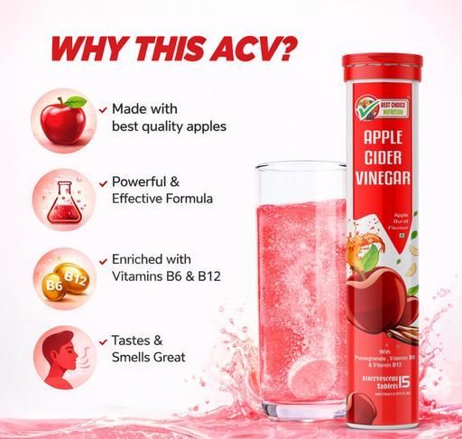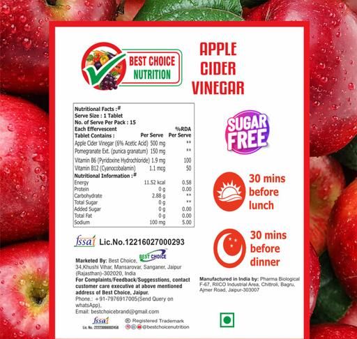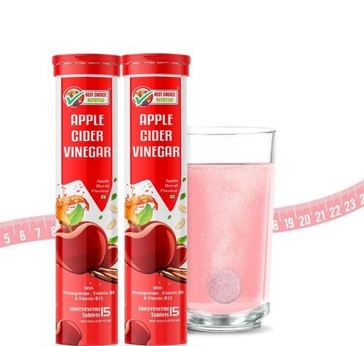 Name: Apple Cider Vinegar Effervescent Tabs Pack of 2 (Apple), 30 tabs | with mother for weight loss I with vitamin B6 & B12 | 100% vegan | No added Sugar |Easy to consume