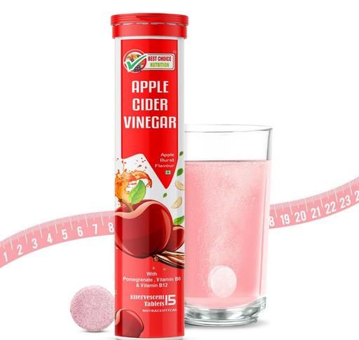 Name: Apple Cider Vinegar Effervescent Tabs with mother for weight loss I with vitamin B6 & B12 | Pack of 1 (Apple), 15 tabs | 100% vegan | No added Sugar |Easy to consume