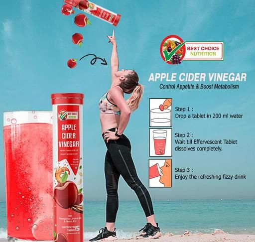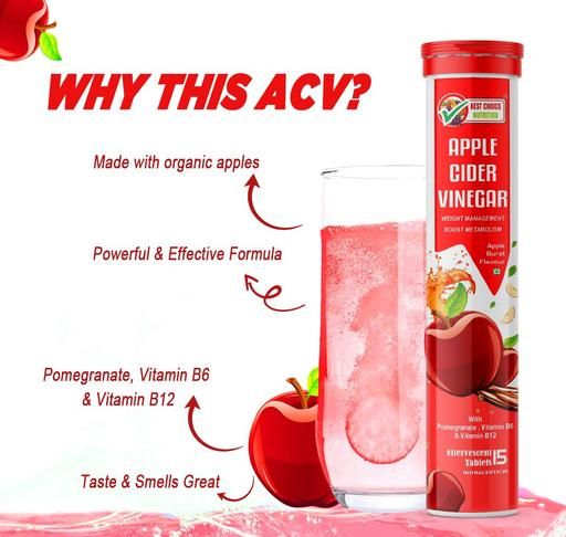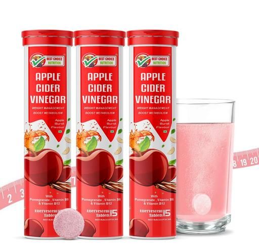 Name: Apple Cider Vinegar Effervescent Tabs with mother for weight loss I with vitamin B6 & B12 | Pack of 3 (Apple), 45 tabs | 100% vegan | No added Sugar |Easy to consume