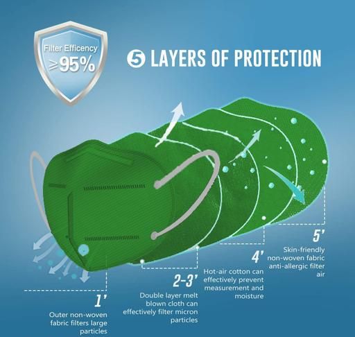 DALUCI Anti Pollution N95 Mask Reusable Unisex Non Woven fabric Face Mask, Ear Loop Style Protective Fold Flat Mask With 5 Layered Filtration, Without Valve (Pack of 1)