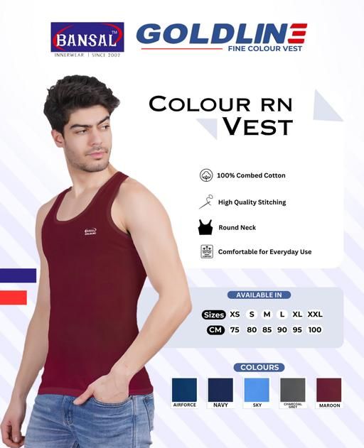 Name: GOLDLINE Pack of 3 Men's Premium Cotton Sleeveless Colour Vest