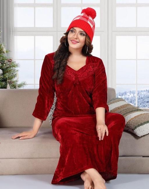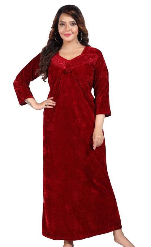 Name: Supriya Women's Velvet Nighty, Night Dress, Maxi For Winter-Maroon