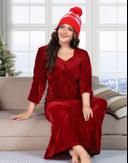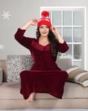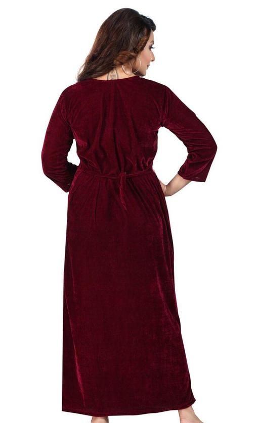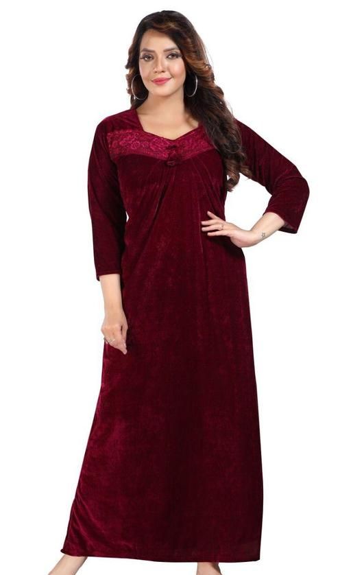 Name: Supriya Women's Velvet Nighty, Night Dress, Maxi For Winter-Wine