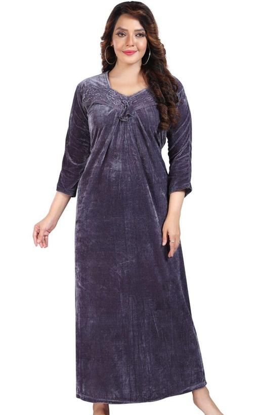 Name: Supriya Women's Velvet Nighty, Night Dress, Maxi For Winter-grey
