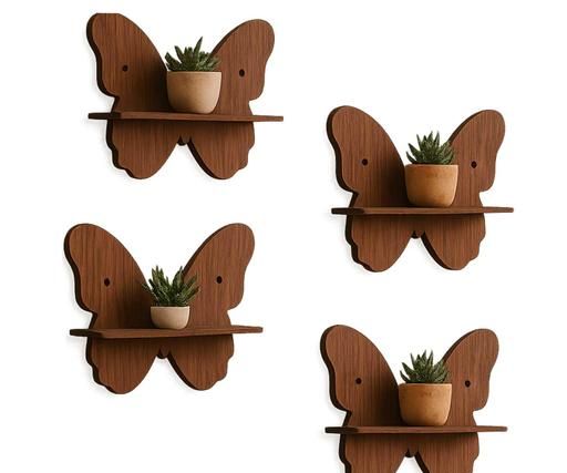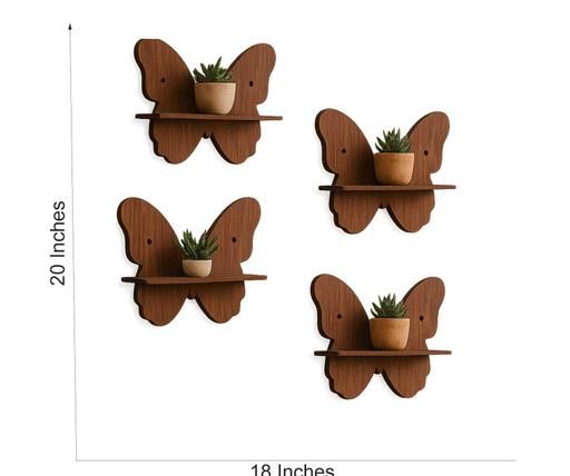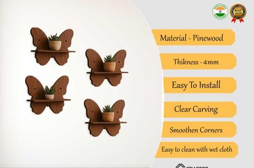Name: Craftzo Wooden Butterfly Wall Shelves for Home Décor | Wall Mount Storage & Display Rack | Set of 4 Shelves