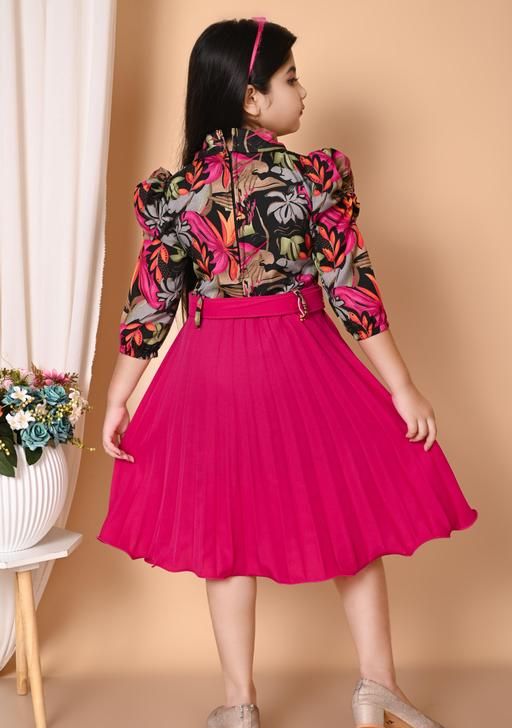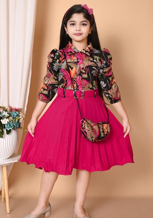 Make your little girl stand out with this Stylish Printed Frock and Dress Pleated Dress from FLASHYKIDZ. This adorable kids dress features a chicc shirt collar, fashionable three-quarter sleeves, and a convenient zipper closure, perfect frock for kids who want both style and ease. Crafted from a soft cotton blend fabric, this gril frock offers all-day com-fort, making it a ideal choice for 8 years girl dress,birthday dress , parties frock, and special occasions kids frock. Complete with a matching bag and belt, this outfit is designed to impress. As a Trending, High-Demand Girls Frock, it’s the latest in fashion frock for cute gril frock and stylish girls frock. Ideal for those looking for a beautiful Kids Frock, 10 years girl dress,Girls Party Dress, or a Special Occasion Frock, this design brings charm and sophistication to any event!"