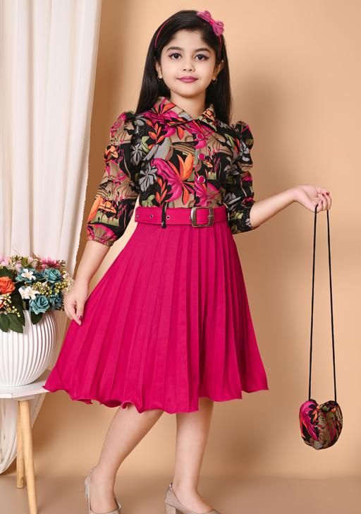 Name: Stylish Girls Printed Frock and Dress Pleated kids Dress with Matching Bag and Belt Perfect Kids Frock for Special Occasions Birthdays gril frock and Parties 10 years gril dress Trending frock High Demand Fashion Frocks and Dresses for Cute 8 years Girl dress
