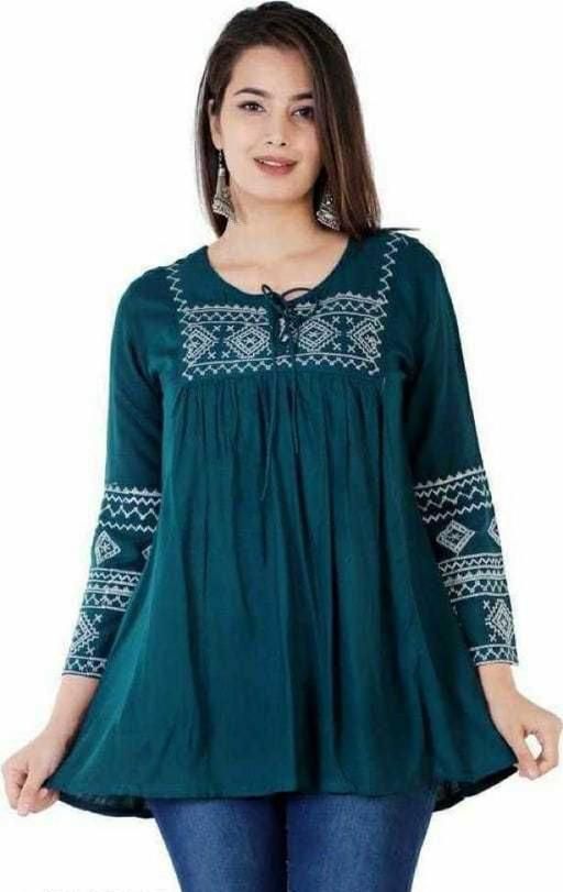 Women Embrodery Green Top, Frock_Top,Kurti_Top