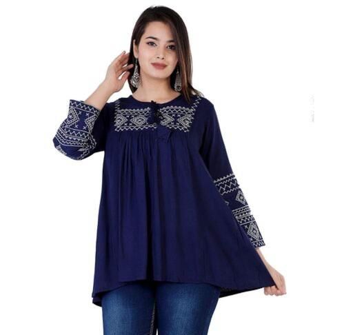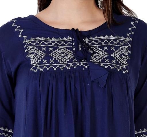 Women Embrodery Blue Top, Frock_Top,Kurti_Top