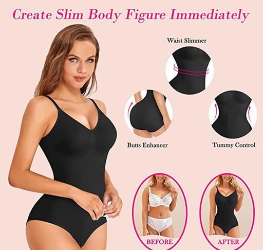 Name: TESMEZY Women Cotton Lycra Full Body Shapwear(Black)