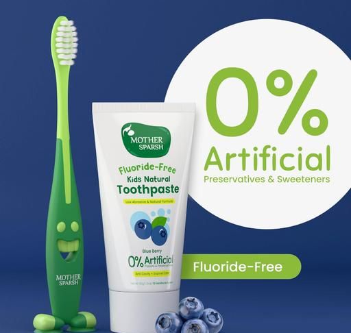Name: Mother Sparsh Blueberry Kids Natural Toothpaste with Toothbrush - 50g