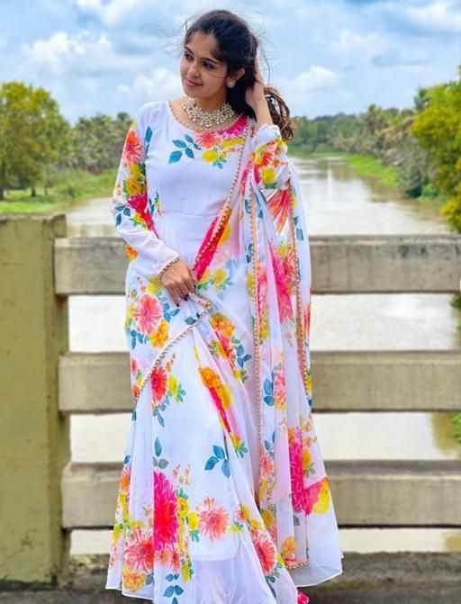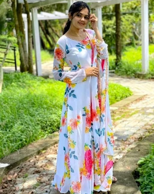 Name: Festival wear Georgette fabric long full flared anarkali gown with dupatta set, party wear dresses, wedding wear dresses, suits for eid