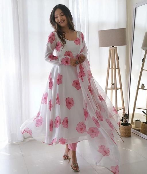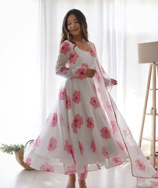 Name: Festival wear Georgette fabric long full flared anarkali gown with dupatta set, party wear dresses, wedding wear dresses, suits for eid