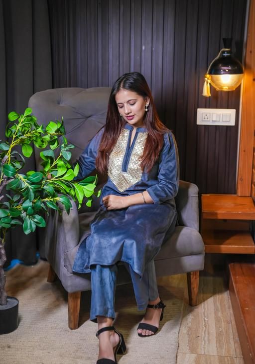 This Velvet Kurta with Pant Set features an exquisite design with intricate golden embroidery on the neckline, adding a touch of sophistication to the traditional attire. Crafted from high-quality velvet fabric, this kurta set offers a luxurious and comfortable wearing experience. The maroon hue of the kurta and pants lends a regal and timeless appeal, making it suitable for various occasions, from festive celebrations to casual outings. The kurta features a relaxed yet flattering silhouette, ensuring a comfortable and stylish fit for the wearer. This velvet kurta set is easy to maintain and can be gently hand-washed or dry-cleaned, ensuring its longevity and vibrant color retention. Crafted from high-quality materials, this kurta set is easy to maintain and ensures long-lasting wear. Perfect for winter, this stylish woolen kurta and pant set is designed to keep you cozy and fashionable, making it a must-have for your winter wardrobe.
