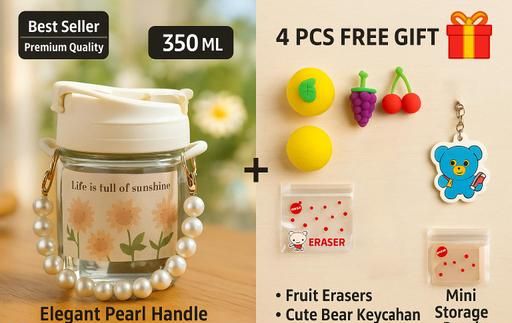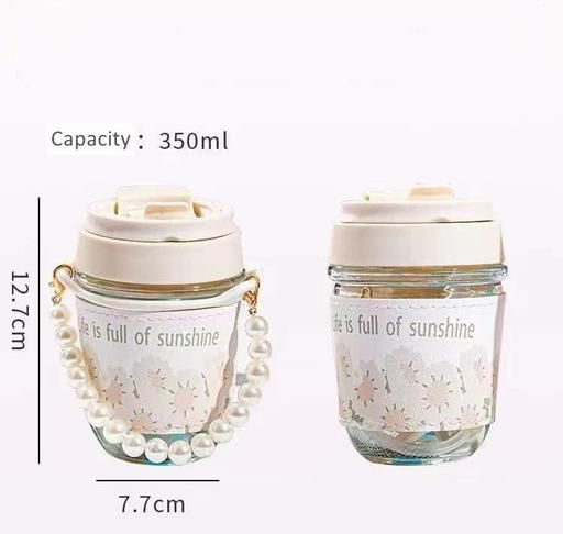 Name: Aanzia Glass Coffee Mugs With Pearl Chain Belt & Sleeve Pack Of 1, Travel Sipper With Double Drink Straw And Lids,Kids Girls Tumbler For Smoothies Milk Cups.