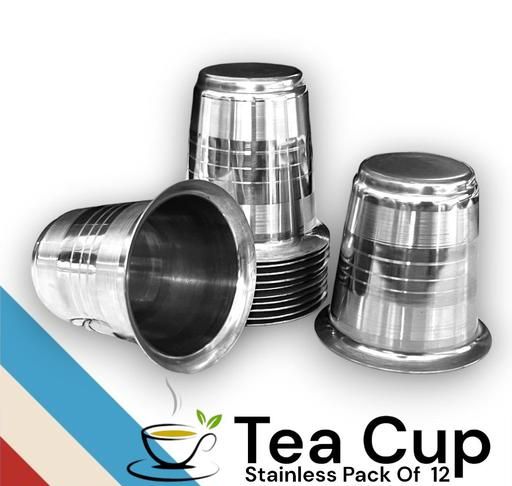 Name: Glass Cup Stainless Steel Tea Glass Set - Set of 12, 75ml Capacity | Durable Steel Tea and coffe glass set