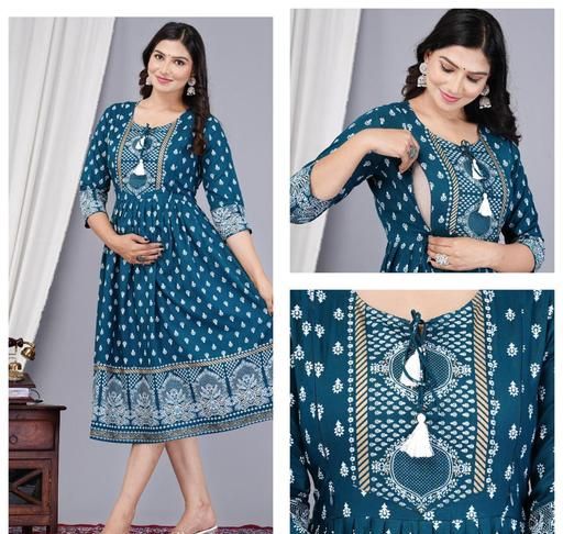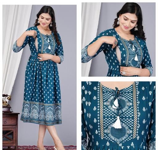 Name: Treading Beautiful Women Printed Teal anarkali kurti maternity kurtis for women feeding kurtis maternity zipper kurtis