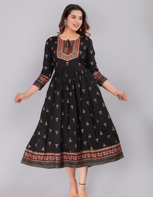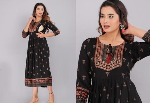 Name: Treading Beautiful Women Printed Black anarkali kurti maternity kurtis for women feeding kurtis maternity zipper kurtis