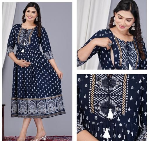 Treading Beautiful Women Printed Blue anarkali kurti maternity kurtis for women feeding kurtis maternity zipper kurtis