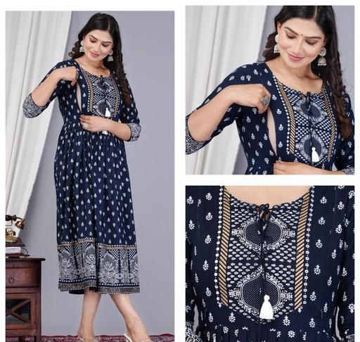 Name: Treading Beautiful Women Printed Blue anarkali kurti maternity kurtis for women feeding kurtis maternity zipper kurtis