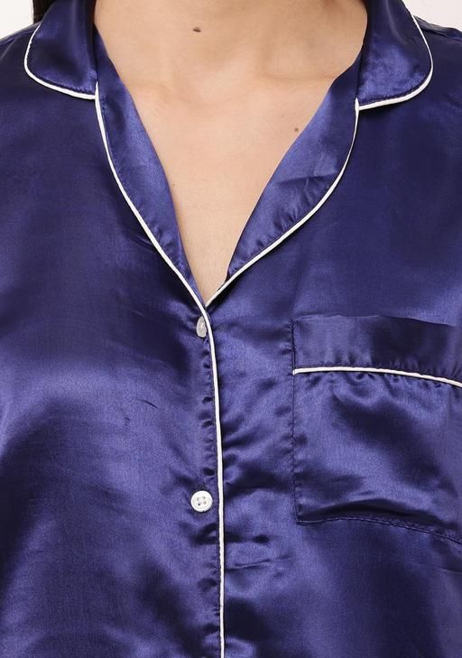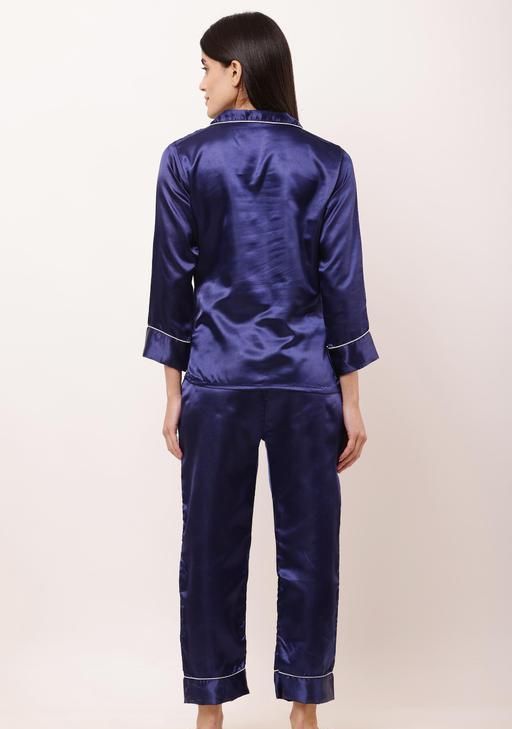 JF Full Night Suit Full pajama And Full Shirt for women And girl Soft comfortable non transparent Satin Best of Winter Color Blue