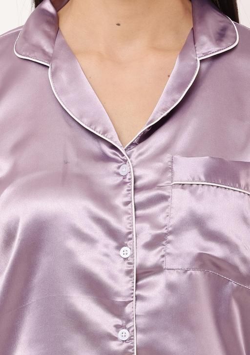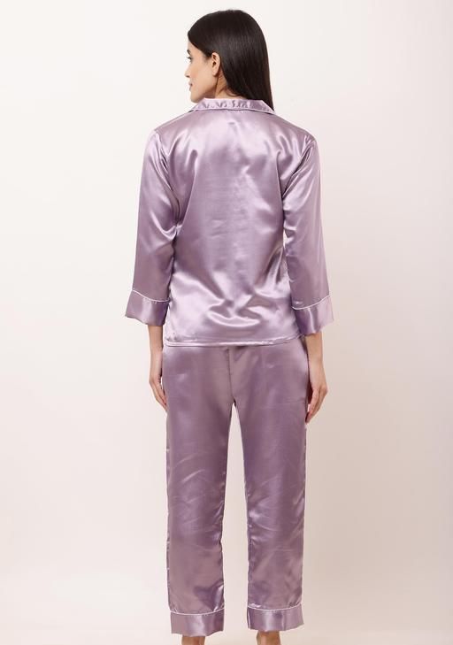 JF Full Night Suit Full pajama And Full Shirt for women And girl Soft comfortable non transparent Satin Best of Winter Color Lavender