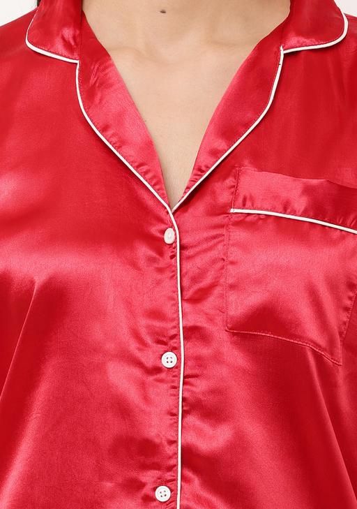 JF Full Night Suit Full pajama And Full Shirt for women And girl Soft comfortable non transparent Satin Best of Winter Color Red