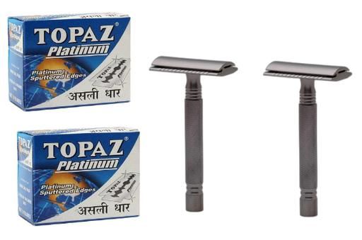 Topaz Platinum Blades 10tucks of 10 Blades (100 Blades) With Two Pc Of Shaving Razor