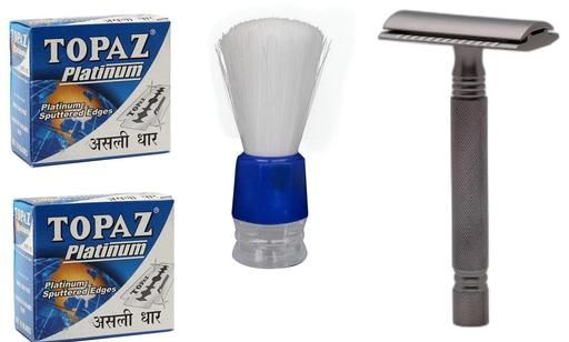 Topaz Platinum Blades 100pc With Shaving Razor & Brush