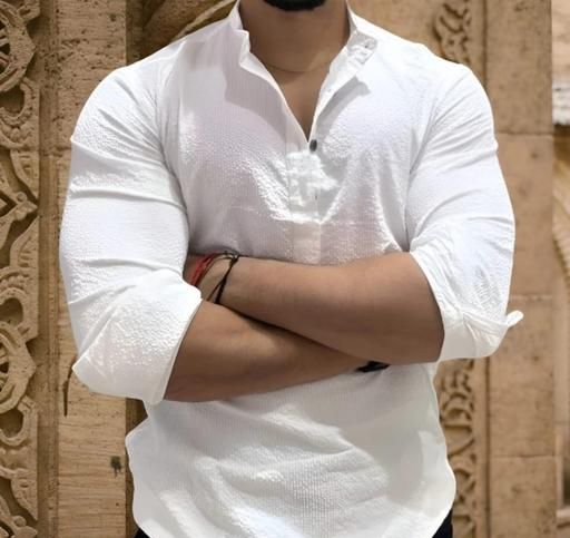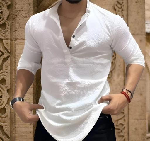 Name: Classic plain Chinese collar men's kurta shirt New Fashionable Formal Mens black shirt Casual shirt for men stylish shirt for men trendy white and black shirt stylish white and black short Kurta for men Mandarin coller shirt for men Classic plain Chinese collar men's kurta short full sleeve kurta