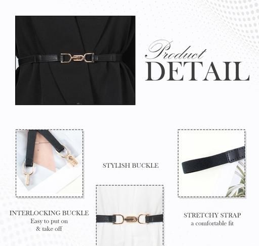 2)Made from high-quality faux leather, the belt offers a luxurious finish while maintaining durability. Its slim and versatile design makes it perfect for defining your waistline in both casual and formal settings.