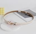 1)Women's Slim Leather Waist Belt with Golden Horse bit Buckle. This belt features a golden horse bit buckle that effortlessly elevates any outfit, from formal dresses to casual skirts and jeans.