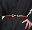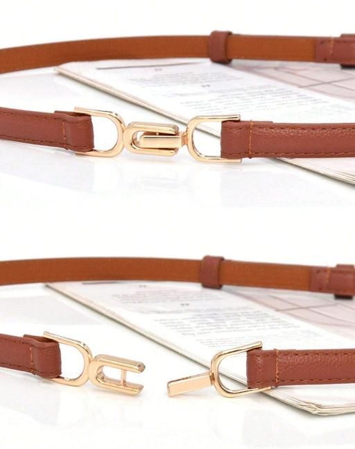Name: Women’s PU Leather Slim Waist Belt with Golden Hook Metal Buckle, Adjustable Belt for Dresses and Jeans - Brown