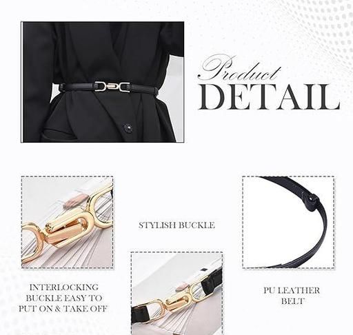 2)Made from high-quality faux leather, the belt offers a luxurious finish while maintaining durability. Its slim and versatile design makes it perfect for defining your waistline in both casual and formal settings.