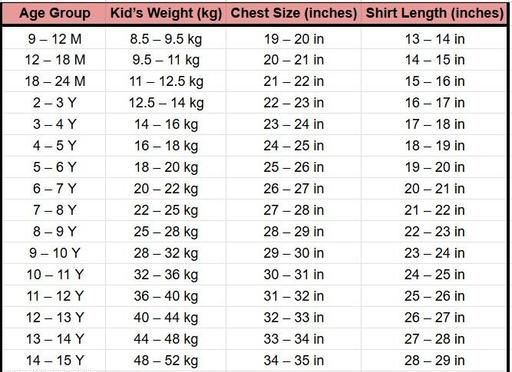 8-9 Years (Chest Size: 16 in, Length Size: 22 in)