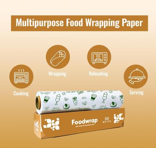 Imvelo 50 Mtr Food Wrapping Paper Roll - Non-Stick, Oil Proof Butter Paper Roll, Reheatable Foil Paper for Food Wrap, Paper Foil for Chapati, Roti Wrap & More, Wrapping Paper for Food, Parchment Paper